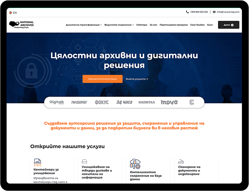 National Archives Corp provides outsourced solutions for document and data management, helping businesses securely store, protect, and manage information while supporting their growth. They needed a corporate website that visually showcases their services, engages potential clients, and guides users through long decision-making cycles.